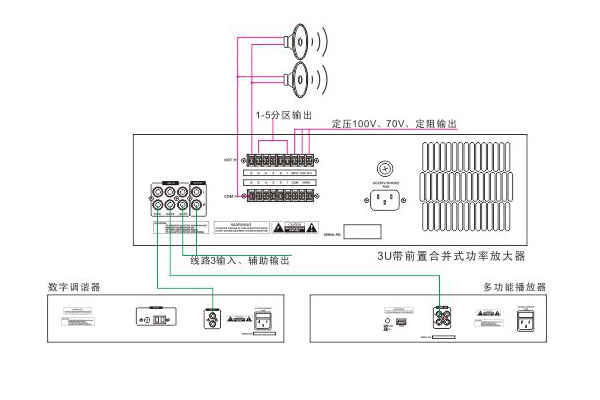 •采用定压定阻输出方式,定压输出100V、70V,定阻输出4-16Ω;